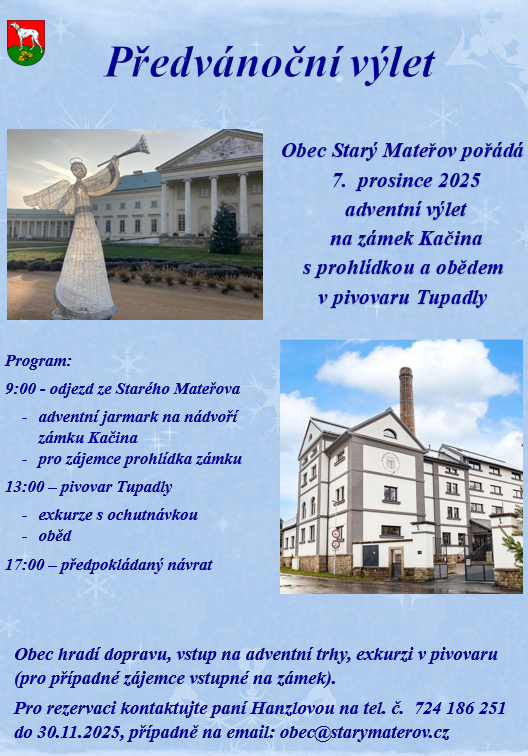 Vzhledem ke zrušeným rezervacím na adventní výlet, nabízíme volná místa. Prosíme zájemce o rezervování na tel. č. 724 186 251