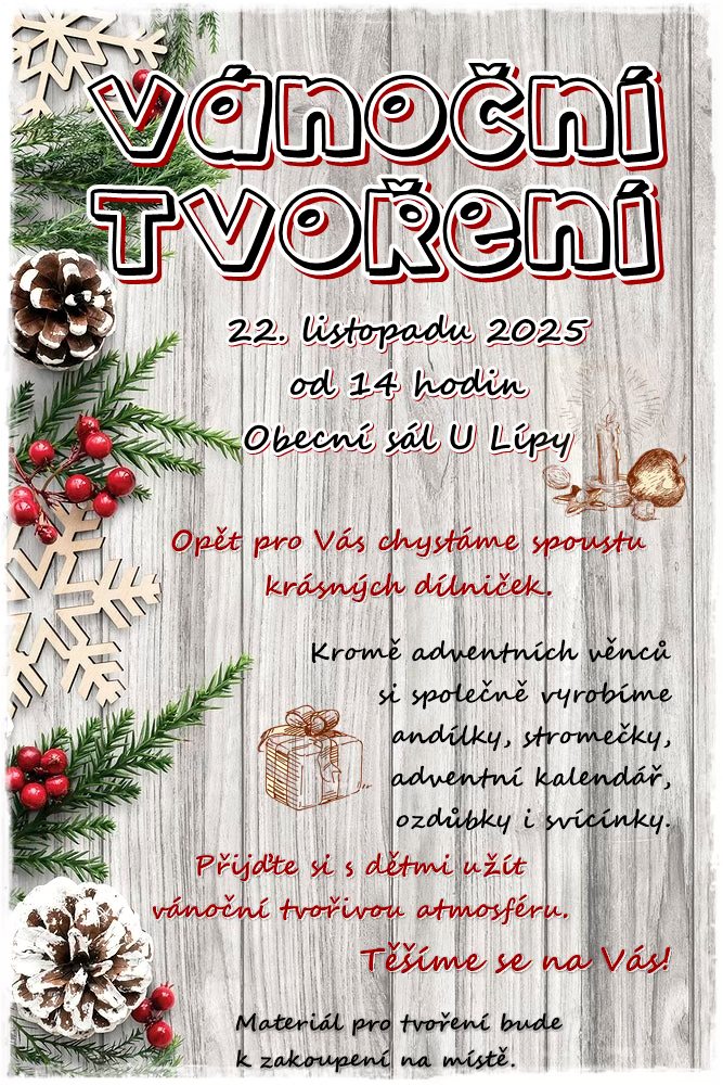 Pozvánka - Vánoce pomalu ale jistě klepou na dveře a tak pro vás a vaše ratolesti opět chystáme tvořivé dílničky.