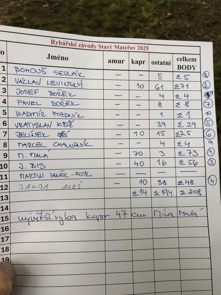Rybářské závody 2025 – jaro dospělí